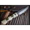 Remarquable travail d'artisan sur ce couteau de chasse doté d'un fabulleux manche en os de chameau poli.