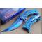 Couteau Dark Side Dragon Blue Titane A/O pliant - Système à ouverture assistée - Longueur ouvert 20.32cm - Longueur fermé 11.43m - Longueur de lame 8.89cm - Lame en acier 440 blue titane - Décor queue de dragon - Manche en acier blue titane avec dragon en relief - Ouverture d'une main avec le flipper - Système de sécurité linerlock - Clip de poche