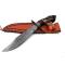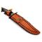 Bowie Damas de Chasse fixe - Longueur totale 34.92cm - Longueur de lame 20.95cm - Lame en acier Damas 256 couches - Garde en Damas - Manche en bois de Cerf - Lame type bowie - Etui en cuir