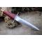 Couteau de chasse dague à lame fixe - Longueur totale 34.50cm - Longueur de lame 20cm - Lame en acier carbone 1055 - Lame type dague finition satin - Double tranchant - Manche en bois - Garde en acier - Pommeau en laiton - Etui cuir - Fabrication Artisanale