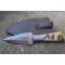 Couteau De Chasse Dague Lame Acier Damas 256 Couches Manche Corne de Bélier Etui Cuir Camping