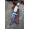 Couteau De Chasse Scout Lame Clip Point Acier Damas 256 Couches Manche Os Etui Cuir F Artisanale