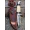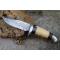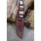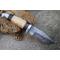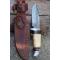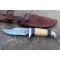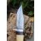 Couteau de Chasse à lame fixe - Longueur totale 18cm - Longueur de la lame 9cm - Lame en acier damas 256 couches - Lame de type clip point - Garde & pommeau en nickel - Manche en os - Etui cuir - Fabrication Artisanale