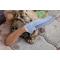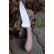Couteau de chasse Skinner survie à lame fixe - Longueur totale 21cm - Longueur de lame 11.5cm - Lame en acier carbone 1055 - Lame type drop point plain edge finition satin - Construction d'une seule pièce - Full tang - Manche en bois forme de crosse - Etui simili cuir - Fabrication Artisanale
