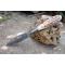 • Lame : 10 cm en acier damas 256 couches, idéale pour le dépeçage. Dos de la lame guilloché. Lame de type bayonette.