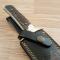 Le Hen & Rooster 805 est un couteau à lame fixe qui rend hommage au design classique des couteaux de type "Bowie". Sa grande lame est forgée en acier inoxydable 440, un acier connu pour sa résistance à la corrosion et sa robustesse. La lame présente un fini satiné et une émouture plate. Le manche est sculpté dans de la corne de cerf véritable, ce qui confère à chaque couteau une texture et un caractère uniques. Une garde en laiton protège la main, et la construction à pleine soie (full tang) assure une solidité maximale. Ce couteau est un excellent choix pour les collectionneurs ou pour une utilisation en extérieur. Il est livré avec un fourreau en cuir brun pour le transport.