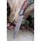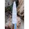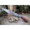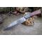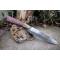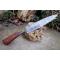 Couteau de cuisine style Chef - Longueur du manche 12.5cm - Longueur de la lame 18.5cm - Construction d'une seule pièce - Full Tang - Lame en Acier damas 256 couches - Plaquettes du Manche en bois - Mitres en bois - Fabrication artisanale - Le dessin de la lame est unique comme une empreinte