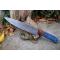 Couteau de cuisine style Chef - Longueur du manche 12cm - Longueur de la lame 19cm - Construction d'une seule pièce - Full Tang - Lame en Acier damas 256 couches - Plaquettes du Manche en bois atlantide - Mitres en bois - Fabrication artisanale - Le dessin de la lame est unique comme une empreinte