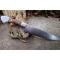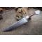Couteau de cuisine style Chef - Longueur du manche 12cm - Longueur de la lame 19.5cm - Construction d'une seule pièce - Full Tang - Lame en Acier damas 256 couches - Plaquettes du Manche en bois - Mosaic pins - Mitres en acier - Fabrication artisanale - Le dessin de la lame est unique comme une empreinte