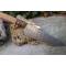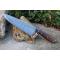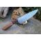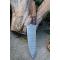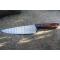 Couteau de cuisine style Chef - Longueur du manche 11.5cm - Longueur de la lame 16.5cm - Construction d'une seule pièce - Full Tang - Lame en Acier damas 256 couches - Plaquettes du Manche en bois - Mitres en bois - Fabrication artisanale - Le dessin de la lame est unique comme une empreinte