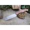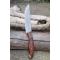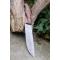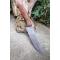 Couteau de cuisine style Chef - Longueur du manche 14.5cm - Longueur de la lame 16.5cm - Construction d'une seule pièce - Full Tang - Lame en Acier damas 256 couches - Plaquettes du Manche en bois - Mitres en bois - Fabrication artisanale - Le dessin de la lame est unique comme une empreinte