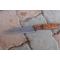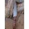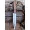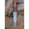 Couteau de cuisine style Chef - Longueur du manche 12cm - Longueur de la lame 16.5cm - Construction d'une seule pièce - Full Tang - Lame en Acier damas 256 couches - Plaquettes du Manche en bois - Mitres en bois - Fabrication artisanale - Le dessin de la lame est unique comme une empreinte
