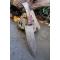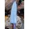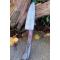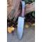 Couteau de cuisine style Chef - Longueur du manche 12.5cm - Longueur de la lame 15.5cm - Construction d'une seule pièce - Full Tang - Lame en Acier damas 256 couches - Plaquettes du Manche en bois - Mitres en bois - Fabrication artisanale - Le dessin de la lame est unique comme une empreinte