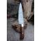 Couteau de cuisine style Chef - Longueur du manche 11cm - Longueur de la lame 20cm - Construction d'une seule pièce - Full Tang - Lame en Acier damas 256 couches - Plaquettes du Manche en bois - Mosaic pins - Mitres en laiton - Fabrication artisanale - Le dessin de la lame est unique comme une empreinte
