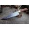 Couteau de cuisine style Chef - Longueur du manche 11cm - Longueur de la lame 20cm - Construction d'une seule pièce - Full Tang - Lame en Acier damas 256 couches - Plaquettes du Manche en bois - Mosaic pins - Mitres en laiton - Fabrication artisanale - Le dessin de la lame est unique comme une empreinte