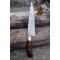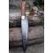 Couteau de cuisine style Chef - Longueur du manche 11cm - Longueur de la lame 20cm - Construction d'une seule pièce - Full Tang - Lame en Acier damas 256 couches - Plaquettes du Manche en bois - Mosaic pins - Mitres en laiton - Fabrication artisanale - Le dessin de la lame est unique comme une empreinte