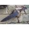 Couteau de cuisine style Chef - Longueur du manche 12.5cm - Longueur de la lame 22cm - Construction d'une seule pièce - Full Tang - Lame en Acier damas 256 couches - Dos de la lame guilloché - Plaquettes du Manche en bois - Mosaic pins - Mitres en laiton - Fabrication artisanale - Le dessin de la lame est unique comme une empreinte