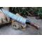 Couteau de cuisine style Chef - Longueur du manche 11cm - Longueur de la lame 20cm - Construction d'une seule pièce - Full Tang - Lame en Acier damas 256 couches - Plaquettes du Manche en bois - Mosaic pins - Mitres en résine - Fabrication artisanale - Le dessin de la lame est unique comme une empreinte