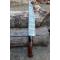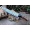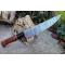 Couteau de cuisine style Chef - Longueur du manche 11cm - Longueur de la lame 20cm - Construction d'une seule pièce - Full Tang - Lame en Acier damas 256 couches - Plaquettes du Manche en bois - Mosaic pins - Mitres en résine - Fabrication artisanale - Le dessin de la lame est unique comme une empreinte