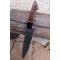 Couteau de cuisine style Chef - Longueur du manche 13cm - Longueur de la lame 18cm - Construction d'une seule pièce - Full Tang - Lame Martelée en Acier damas 256 couches - Plaquettes du Manche en bois - Mosaic pins - Entretoises résine - Mitres en résine - Fabrication artisanale - Le dessin de la lame est unique comme une empreinte