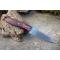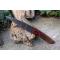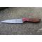 Couteau d'office - Longueur du manche 11cm - Longueur de la lame 11.5cm - Construction d'une seule pièce - Full Tang - Lame en Acier damas 256 couches - Plaquettes du Manche en bois de rose - Mitres en cocobolo - Trou pour dragonne - Fabrication artisanale - Le dessin de la lame est unique comme une empreinte