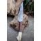 Couteau d'office - Longueur du manche 12.5cm - Longueur de la lame 14cm - Construction d'une seule pièce - Full Tang - Lame en Acier damas 256 couches - Plaquettes du Manche en os & bois - Fabrication artisanale - Le dessin de la lame est unique comme une empreinte