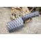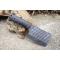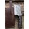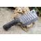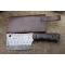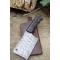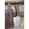 Couteau de Cuisine Hachoir Mini Hachette à lame fixe - Longueur de lame 8.5cm - Longueur du manche 9cm - Construction d'une seule pièce - Full Tang - Lame en acier damas 256 couches - Lame martelée - Dos de la lame guilloché côté manche - Plaquettes du manche en micarta - Trou dans le manche pour dragonne - Etui cuir - Fabrication artisanale