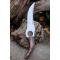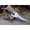 Couteau De Cuisine & Rando Lame Acier Carbone 1055 Façon Huusk Etui Simili Cuir Manche 2 Bois Artisan
