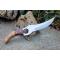 Couteau Cuisine & Rando - Longueur Totale 25cm - Longueur du manche 9cm - Construction d'une seule pièce - Full Tang - Lame en Acier carbone 1055 - Lame recurve pour émincer facilement - Plaquettes du Manche en bois - Mosaic pins - Mitres en bois - Trou pour une meilleur prise - Fabrication artisanale - Etui simili cuir - Trou dans le manche pour dragonne