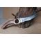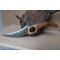 Couteau Cuisine & Rando - Longueur totale 25cm - Longueur de la lame 12cm - Construction d'une seule pièce - Full Tang - Lame en Acier damas 256 couches - Lame recurve pour émincer facilement - Plaquettes du Manche en bois de rose - Mitres en olivier - Trou pour une meilleur prise - Fabrication artisanale - Le dessin de la lame est unique comme une empreinte - Etui simili cuir - Trou dans le manche pour dragonne
