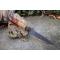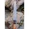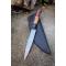 Couteau Cuisine & Rando - Longueur du manche 11cm - Longueur de la lame 12.5cm - Construction d'une seule pièce - Full Tang - Lame en Acier damas 256 couches - Plaquettes du Manche en bois - Mitres en bois - Fabrication artisanale - Le dessin de la lame est unique comme une empreinte - Etui simili cuir