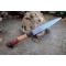 Couteau De Cuisine & Rando Lame Acier Damas 256 Couches Manche 2 Bois Etui Cuir Fabric Artisanale