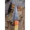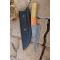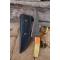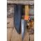 Couteau Cuisine & Rando - Longueur du manche 10cm - Longueur de la lame 14.5cm - Construction d'une seule pièce - Full Tang - Lame en Acier damas 256 couches - Plaquettes du Manche en bois - Mitres en résine - Fabrication artisanale - Le dessin de la lame est unique comme une empreinte - Etui simili cuir