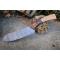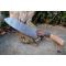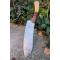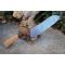 Couteau de cuisine de chef 3 bois - Longueur du manche 14cm - Longueur de la lame 18cm - Construction d'une seule pièce - Full Tang - Lame en Acier damas 256 couches - Plaquettes du Manche en bois - Mitres en bois - Fabrication artisanale - Le dessin de la lame est unique comme une empreinte