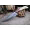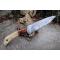 Couteau de cuisine style Japonais - Longueur du manche 13cm - Longueur de la lame 18cm - Construction d'une seule pièce - Full Tang - Lame en Acier damas 256 couches - Plaquettes du Manche en bois & os - Entretoises en laiton - Mosaic pins - Fabrication artisanale - Le dessin de la lame est unique comme une empreinte