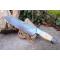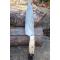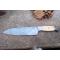 Couteau de cuisine style Japonais - Longueur du manche 12cm - Longueur de la lame 18.5cm - Construction d'une seule pièce - Full Tang - Lame en Acier damas 256 couches - Plaquettes du Manche os - Mosaic pins - Mitres en acier & bois - Fabrication artisanale - Le dessin de la lame est unique comme une empreinte