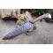Couteau de cuisine style Japonais - Longueur du manche 12.5cm - Longueur de la lame 20.5cm - Construction d'une seule pièce - Full Tang - Lame martelée en Acier damas 256 couches - Manche en bois - Trou dans le manche pour dragonne - Fabrication artisanale - Le dessin de la lame est unique comme une empreinte