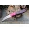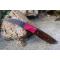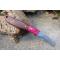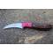Couteau de Druide - Longueur du manche 12cm - Longueur de la lame 7cm - Construction d'une seule pièce - Full Tang - Lame en Acier damas 256 couches - Plaquettes du Manche en bois de rose - Trou dans le manche pour dragonne - Mitres en cocobolo - Fabrication artisanale - Le dessin de la lame est unique comme une empreinte