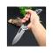 Couteau au design agressif Pliant de Poche avec Sa lame en acier inoxydable style damas tant aux lignes tendues est à ouverture facile mesure 10 cm et possède une sécurité, manche de 13 cm en acier/résine style damas, et poids 180 g. Clip ceinture également présent sur le manche. Manche gravé antidérapant en résine & acier style damas. Sécurité anti fermeture. Ouverture latérale en sortant du manche. Lame aiguisée en acier inoxydable de 10 cm style damas.