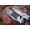 Couteau au design agressif Pliant de Poche avec Sa lame en acier tant aux lignes tendues est à ouverture facile latérale. Manche en acier/résine massif 13 cm de longueur. Lame en acier inoxydable de 9,5 cm de longueur. Lame 57 HRC largeur 25 mm. Ouverture latérale en sortant du manche. Sécurité anti fermeture. Poids : 210 g. Clip ceinture également présent sur le manche & brise vitre & coupe ceinture. Belle affaire pour collectionneur qui souhaite un très beau couteau de haute qualité, Idéal dans une belle collection. Le couteau dédié aux pêcheurs, bricoleurs, campeurs, sculpteurs… L’outil idéal pour apprêter et écorcher un gibier…