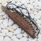 Ce couteau à lame fixe de style Western est un outil robuste et simple, au design inspiré des couteaux traditionnels de la frontière américaine. Il est doté d'une lame de type "Patch" en acier inoxydable, conçue avec une construction à pleine soie pour une durabilité et une solidité accrues. Le manche est en bois brun et offre une prise en main classique. Ce couteau est accompagné d'un fourreau en cuir brun unique orné de franges et de perles, ajoutant un style authentique.