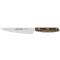 Le manche en bois d'Ovengkol, avec sa finition naturelle, assure une prise en main confortable et sécurisée. Les rivets en laiton ajoutent une touche d'élégance tout en renforçant la solidité de l'ensemble. Ce couteau, avec son tranchant lisse, est particulièrement adapté pour trancher viandes, poissons et légumes avec précision.