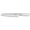 Le manche en Corian, matière synthétique antibactérienne, offre une prise en main confortable et une esthétique moderne avec sa finition blanc immaculé. Sa longueur totale de 360 mm et son poids d'environ 210 g contribuent à un équilibre parfait, idéal pour la découpe de viande et de volaille.