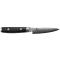 Le couteau à découper Yaxell Ran Paring combine une lame en acier Damas à 69 couches et un coeur en VG10 pour une coupe exceptionnelle. Le manche en Micarta, renforcé par des rivets en acier inoxydable, assure confort et stabilité. Sa lame de 100 mm, au profil spécialement conçu pour la découpe, garantit des coupes nettes et précises.