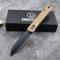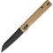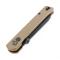 Ce couteau est doté d'une lame de 7,6 cm de style Tanto en acier 14C28N, reconnu pour son excellente rétention de tranchant et sa grande résistance à la corrosion. La lame est dotée d'un revêtement noir distinctif. Le manche est fabriqué en aluminium de couleur tan, offrant une prise en main stable tout en étant léger.