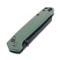 Ce couteau est doté d'une lame de 8,4 cm de style Sheepsfoot en acier 14C28N, un matériau reconnu pour son excellente rétention de tranchant et sa résistance à la corrosion. La lame est traitée avec un revêtement noir élégant. Le manche de 11,6 cm est fabriqué en aluminium robuste de couleur olive, offrant une prise en main stable et légère.