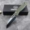 Le Defcon Warhawk TD020OD est un couteau pliant EDC au design tactique et à la finition haut de gamme. Sa lame Sheepfoot en acier Sandvik 14C28N avec revêtement deux tons noir/argent offre une excellente tenue de coupe et une résistance élevée à la corrosion. Le manche en Micarta vert olive assure une prise en main confortable et antidérapante. Le système de verrouillage Button Lock est monté sur roulements à billes céramique, garantissant une ouverture fluide et sécurisée via le trou de pouce.
