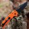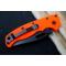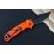 Couteau Demko AD20.5 Shark Lock Orange Grivory Handle BLK AUS-10A Blade IKBS Clip pliant - Longueur ouvert 19.36cm - Longueur fermé 11.43cm - Longueur de lame 8.25cm - Epaisseur de lame 3.30mm - Lame de type clip point plain edge finition stonewash - Lame en acier AUS-10 - Dureté 59-60HRC - Lame montée sur pivot avec roulement à billes - Platines en acier - Plaquettes du manche en grivory orange - Ouverture d'une main avec le thumb - Système de sécurité Shark Lock - Clip de poche