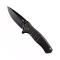 Couteau CRKT "Dextro", lame revêtement nitrure de titane noir avec "flipper", à cran intérieur et à bouton double, manche 12 cm aluminium anodisé noir, pivot anodisé vert, clip.