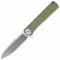 Le manche est composé de plaquettes en Micarta vert, un matériau composite extrêmement résistant, offrant une prise en main exceptionnelle même dans des conditions humides. La mécanique est assurée par un système d'ouverture Flipper ultra-fluide grâce à son pivot monté sur roulements à billes. Le verrouillage Liner Lock garantit une sécurité optimale lors de l'utilisation. Compact et équilibré, il est équipé d'un clip de poche pour un port quotidien discret et sécurisé.